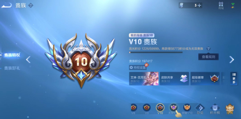 如果说,衡量一位玩家的氪金有多大,那么肯定就是要看贵族积分榜了。毕竟,无论贵族积分多还是少,玩家都能够看到。而在目前王者荣耀全服贵族积分榜中,要属V区的贵族榜遥遥领先。没错,Q区的贵族榜第一才只有1500W的贵族积分,而V区的贵族榜中,前三都已经是突破2000W贵族积分的大佬玩家了。