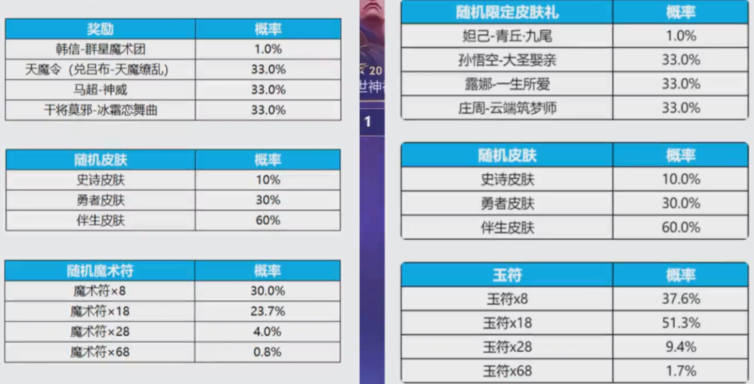 不过,两次的活动相对比,这次的魔术符整体获得概率,要比上次低一点哦。也就是说,魔术符越多,概率就越低。而这一切,主要是因为王者荣耀上架了道具分解功能。