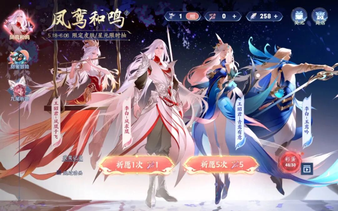 前面已经说过了,王者荣耀520活动虽然已经结束,但是在后续还会有第二波情侣皮肤返场的。没错,就是李白王昭君的凤求凰了,不得不说,这两款情侣皮肤已经返场比较多次了。但是作为鸡年限定皮肤,还是有很多新手玩家没有。