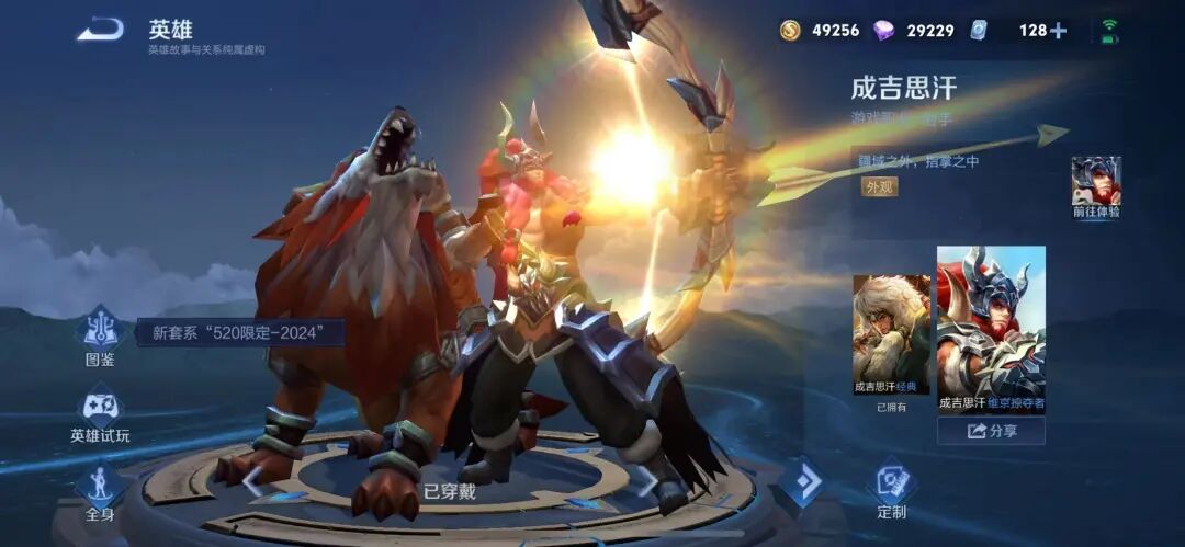 作为王者荣耀最惨的射手英雄,成吉思汗这八年来只有一款伴生皮肤,由于版权问题至今都没有上架一款新皮肤。甚至,在之前成吉思汗有一款赛季皮肤的,没想到直接是删除下架了。
