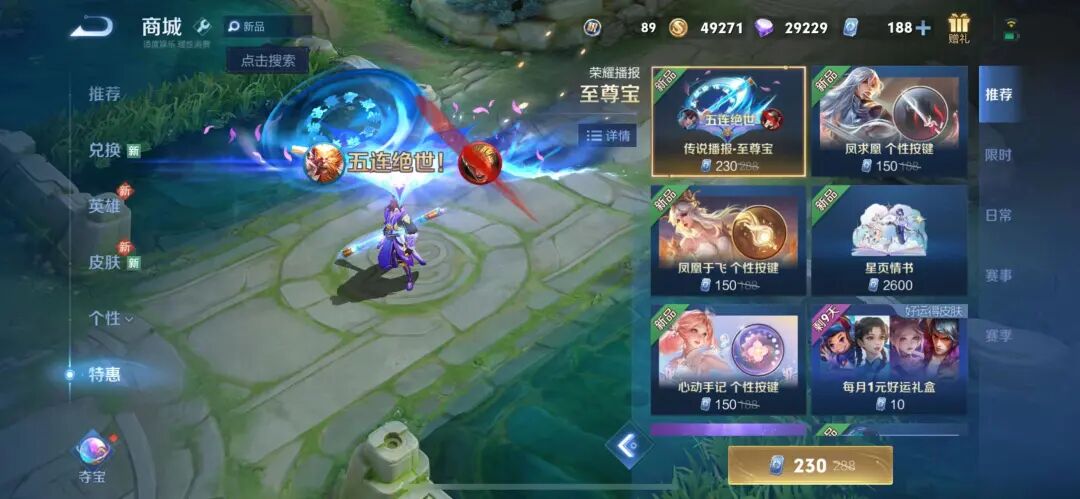 最后呢,我们来聊聊王者荣耀的播报系统。自从上架了李信和王昭君的传说荣耀播报之后,很多玩家都想要官方继续上新。这不,王者荣耀这次是在正式服更新之后,上架了至尊宝的传说荣耀播报。相信看了这款荣耀播报的玩家,都感觉非常帅吧?尤其是五杀团灭的酷炫播报特效,让玩家觉得230点券都有点便宜了。不得不说,猴子玩家笑了啊,能够获得这种特效的荣耀播报。各位玩家们,你们有什么想说的话,记得在留言区跟我交流沟通哈。