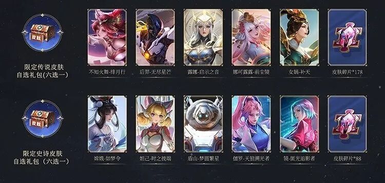 没错,王者荣耀在五月份的时候,已经是返场了多款限定皮肤。其中包含了孙策和大乔的挚爱花嫁皮肤,还有就是李白凤求凰和王昭君的凤凰于飞。另外呢,王者荣耀在儿童节版本中,还会有十款限定返场,玩家们是可以获取。就是这个“手可摘星辰”的音乐剧,玩家们只要拥有门票,就可以获得免费的限定皮肤。不过,想要获得传说限定宝箱的话,就需要680马内,而史诗限定宝箱的话,则是480马内哦。