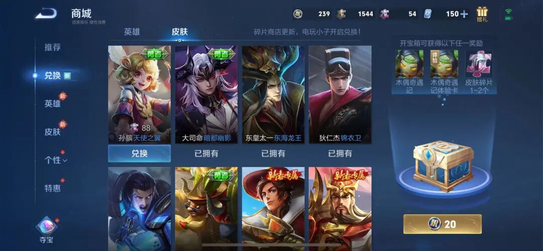 另外一方面,亚瑟的心灵战警和兰陵王的暗隐猎兽者皮肤,会上架商城,玩家88个皮肤碎片兑换就行了啊。