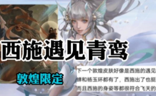 其实很多玩家都知道,王者荣耀在去年是重启了一些主题皮肤,比如说儿童节皮肤,还有黄金圣斗士皮肤,以及敦煌限定皮肤等等。而在今年,王者荣耀自从吕布遇见神鼓传说登场之后,下一款敦煌皮肤归属是谁,都是让玩家很期待。毕竟,每年的敦煌皮肤时间一般是在8月份的时候,今年的敦煌限定皮肤资格,是给到了西施哦。没错,西施的遇见青鸾已经曝光很久了,而且还有博主公布了彩蛋。所以,西施遇见青鸾在今年上架,也是有很大可能的哦。在我看来,鲁班、西施笑了,不仅有限定返场,而且还有新皮肤资格,简直是美滋滋啊。