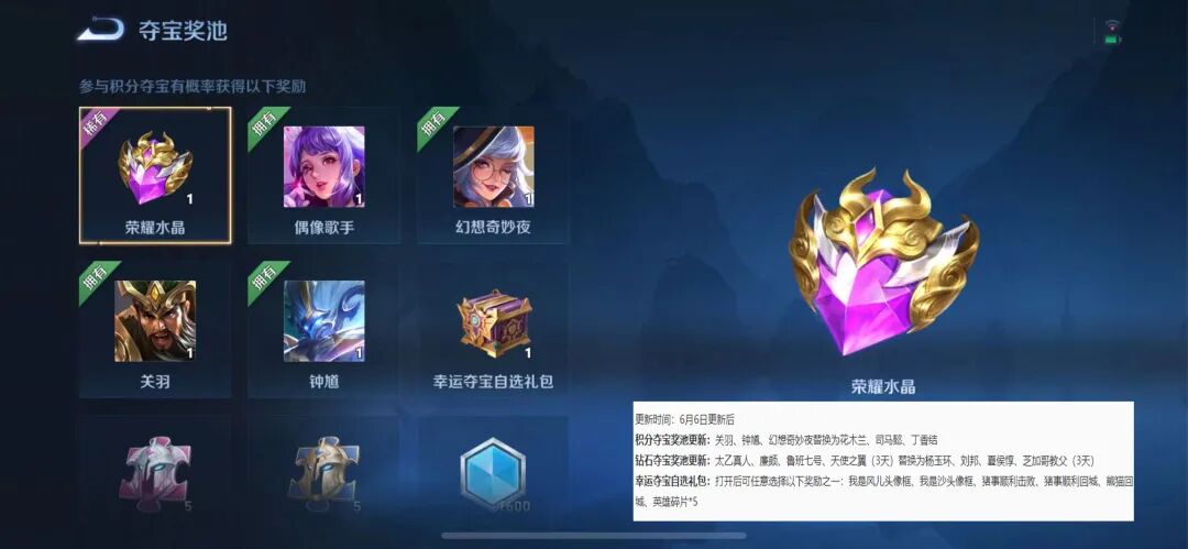 不过呢,王者荣耀的积分夺宝折扣,还是有好的一面,毕竟武则天也是能够降价获取了。毕竟,武则天是需要一颗荣耀水晶的,夺宝折扣的话,那么就意味着武则天最低能够1000马内左右就可以获取了哦。在我看来,有荣耀积分多的玩家,还是抽一颗荣耀水晶放着吧,你们认为呢?