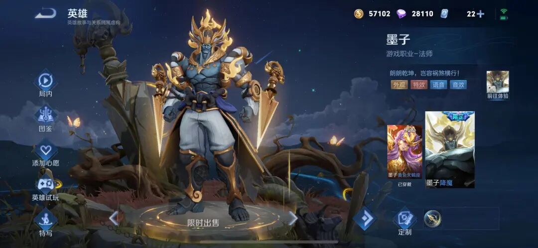 比如说墨子的降魔限定皮肤,也要即将返场了哦。要知道,墨子的黄金天蝎座上架一个多月了,所以降魔限定返场的话,也是没有冲突的。在我看来,作为史诗限定的墨子降魔皮肤,在模型和特效方面,都是相当不错的哦,888点券值得入手。