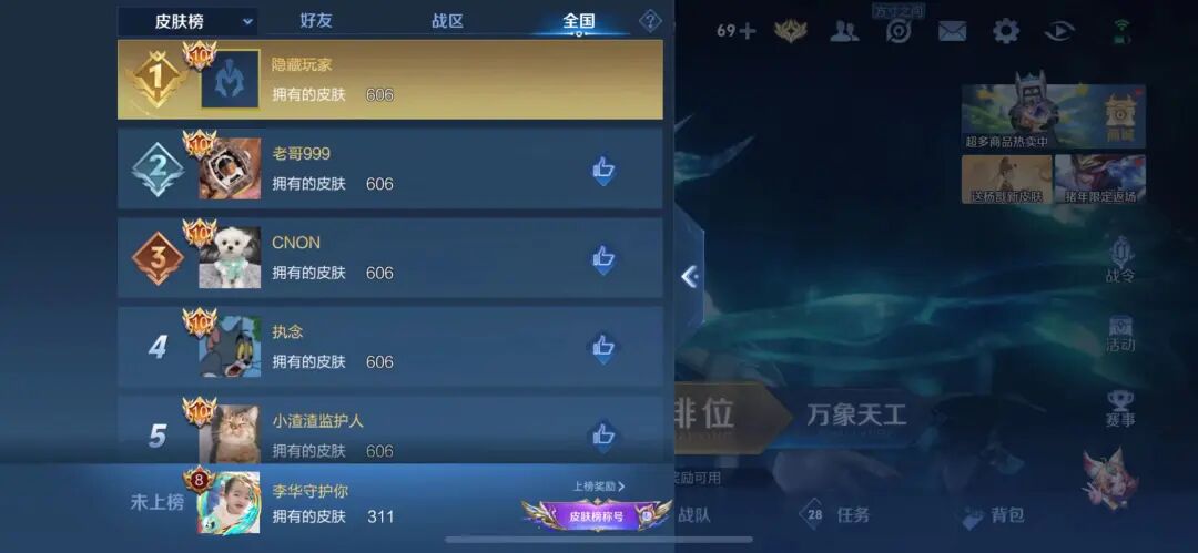 王者荣耀皮肤数量606款