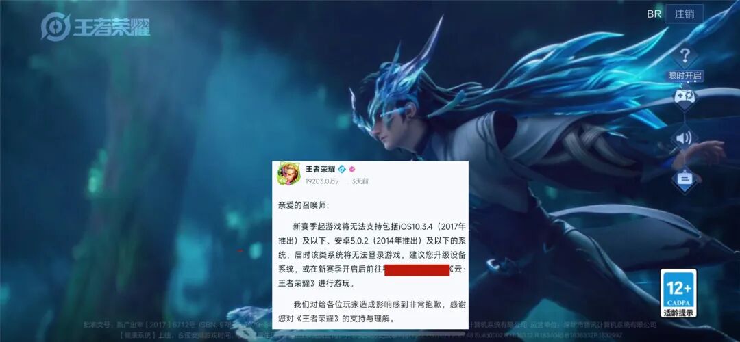 另外一方面,王者荣耀的elo机制重做之后,官方也是宣布两类玩家遭劝退。没错,就是设备的升级了,在S36赛季更新之后,安卓和ios的低版本将不能支持王者荣耀这款游戏了。