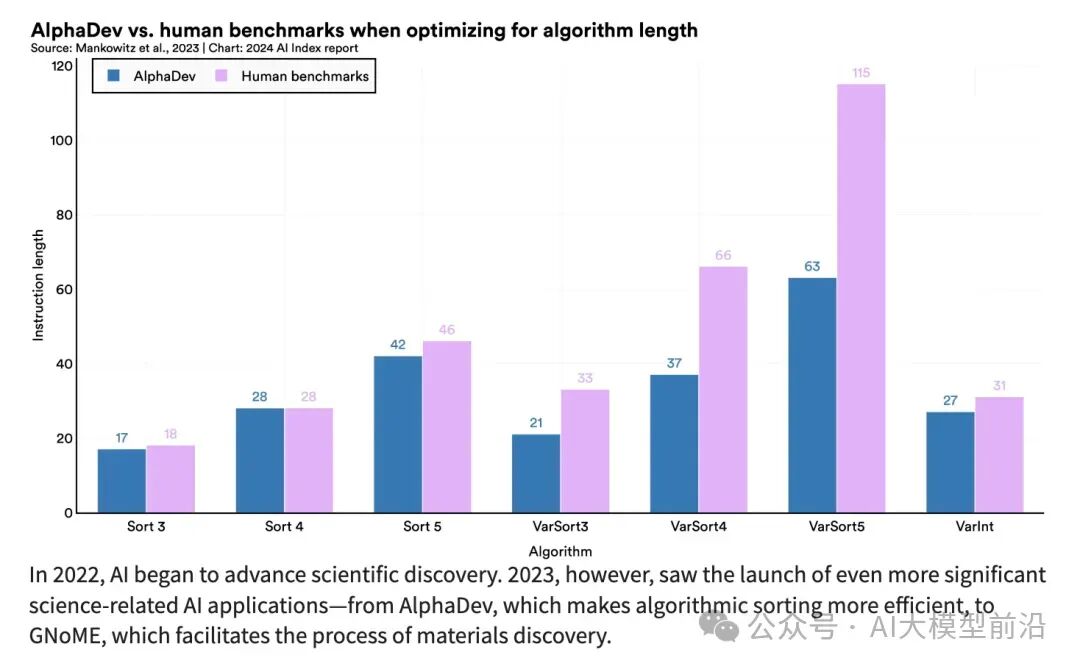 2022年,人工智能在科学发现领域崭露头角。然而,到了2023年,人工智能的应用在科学领域更是大放异彩——AlphaDev的出现,极大提升了算法排序的效率;GNoME的助力,为材料发现过程注入了新的活力;GraphCast则以其超凡的精准度,在一分钟内提供未来十天的天气预报;而AlphaMissence则成功地对7100万种可能的错义突变中的约89%进行了分类。这些科技新星共同描绘出一幅人工智能与科学紧密融合的未来画卷,为人类社会的进步和发展注入了新的动力。