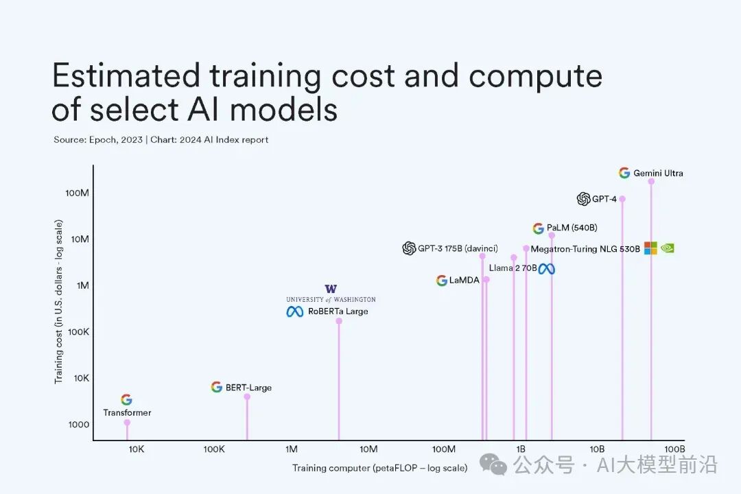 根据AI Index的最新估算,最尖端的人工智能模型的训练成本已经飙升到了前所未有的高度。拿OpenAI的GPT-4来说,它的训练据称耗资高达7800万美元,而谷歌的Gemini Ultra更是以1.91亿美元的天价计算成本让人咋舌。