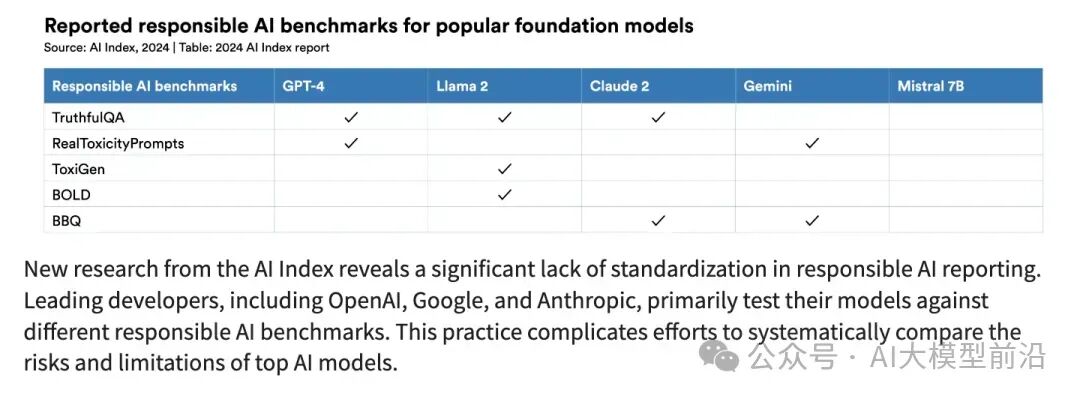 根据AI Index的最新研究,我们发现负责任的人工智能领域在标准化方面存在严重的不足。诸如OpenAI、谷歌和Anthropic等领军企业,它们主要基于各自的基准测试其人工智能模型的责任性。这种做法无疑增加了系统地比较顶级人工智能模型的风险和局限性的难度。因此,我们迫切需要在负责任的人工智能领域制定更加统一的标准,以便更好地评估和比较各种模型的性能表现。