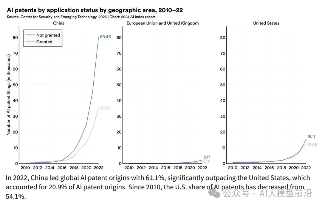2023 年,61 个著名的人工智能模型源自美国的机构,超过欧盟的 21 个和中国的 15 个。