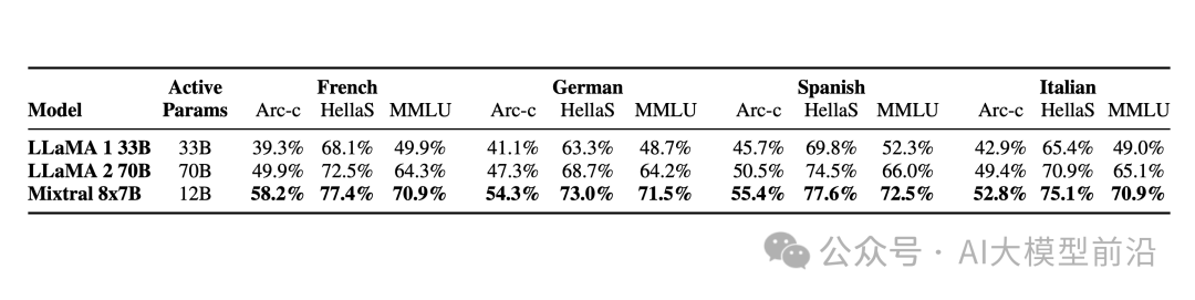 多种语言支持:Mixtral 8x7B 可处理多种语言(法语、德语、西班牙语、意大利语和英语),非常适合全球应用。