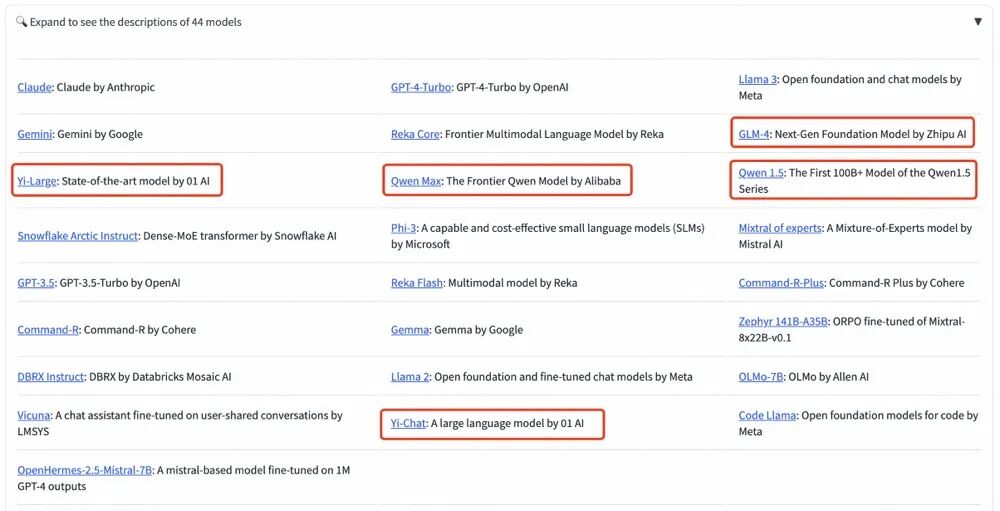此次Chatbot Arena共有44款模型参赛,既包含了顶尖开源模型Llama3-70B,也包含了各家大厂的闭源模型。