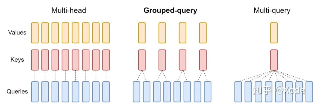 可以看到,k_proj 和 v_proj 的 out_features 从 256 变为了 128,这即是 GQA 机制。