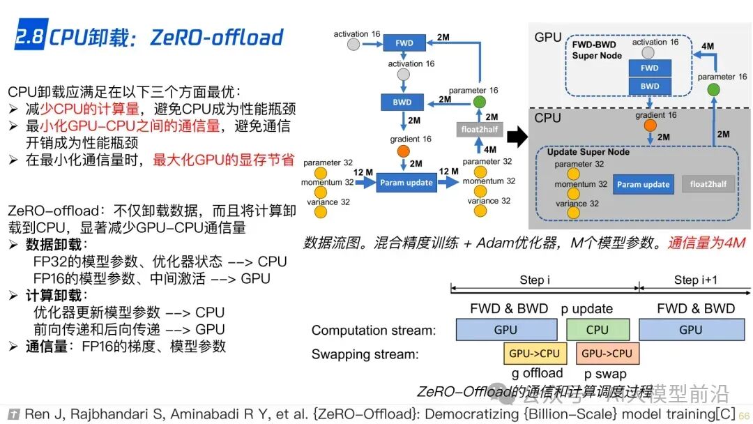 Optimizer)和CPU卸载技术ZeRo-offload,通过减少内存占用和提高计算效率,进一步加速了训练过程。混合精度训练(Mixed
