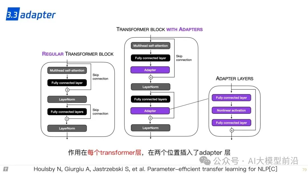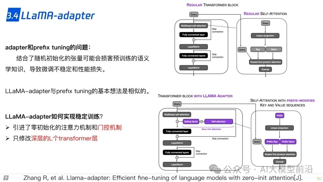 Tuning和Adapter等方法,通过调整模型的部分参数而非全部,实现了高效的模型定制。LLaMA-Adapter和LoRA等技术则进一步优化了这一过程,使模型能够更快地适应新的任务和领域,同时保持较高的性能。