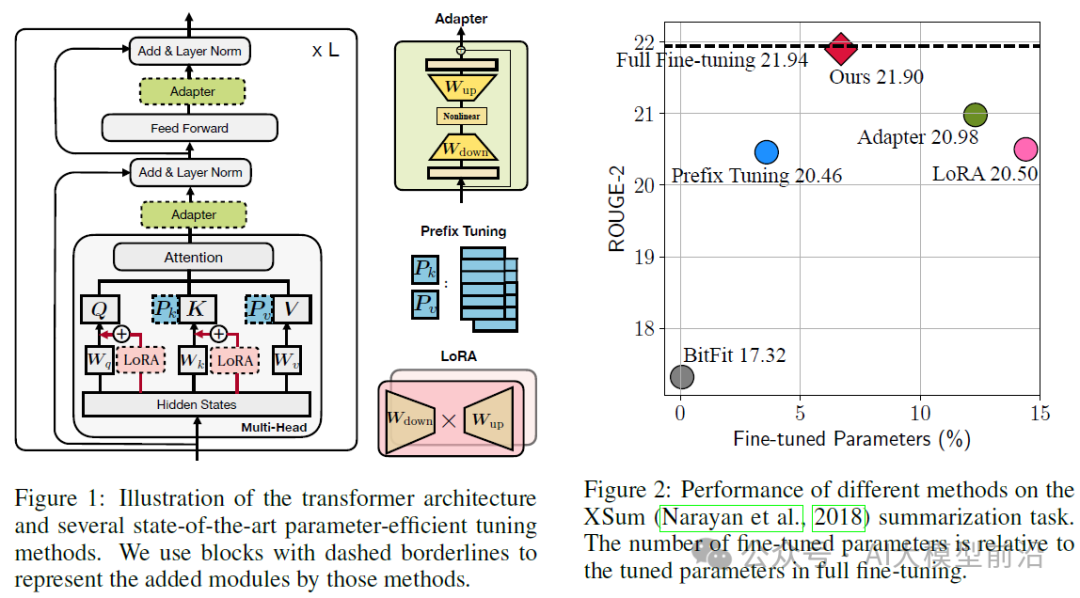 为了克服这些挑战,参数高效微调(PEFT)技术应运而生。PEFT通过仅更新模型中的关键参数来降低训练时间和计算成本,同时保持或提升模型性能。这一技术家族包括多种方法,如Prefix Tuning、Prompt Tuning、P-Tuning、Adapter Tuning以及LoRA等。这些方法旨在提高训练效率,同时保持模型的泛化能力。