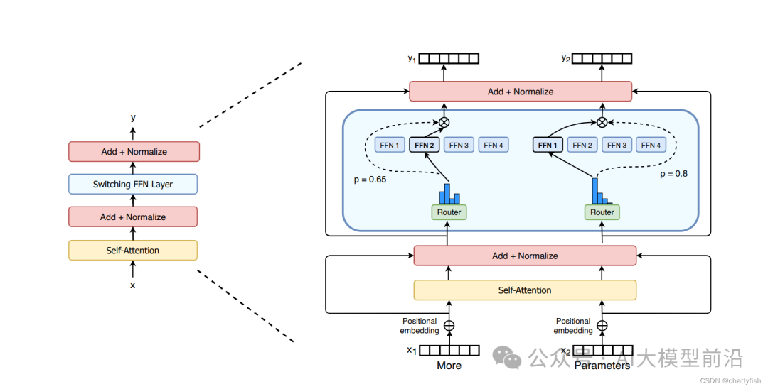 在MoE领域,Google提出的Switch Transformers通过简化路由算法和直观的模型改进,有效地缓解了模型复杂性高及下游任务微调不稳定等问题。该方案降低了通信和计算成本,提高了训练稳定性,并展示了使用低精度格式训练大型稀疏模型的可能性。