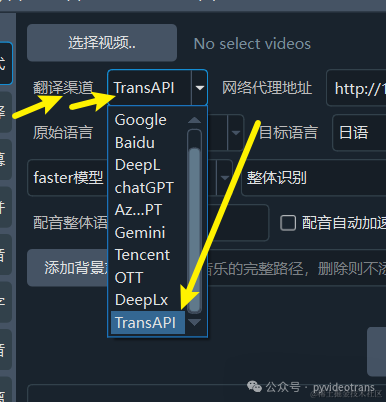 没问题后,翻译渠道里选择“TransAPI” 就可以愉快的使用免费api、免费服务资源翻译你的视频了,免费额度一般每月也足够使用了。假如提示连接失败,记得填写代理地址哦,你懂的,国内访问这些不受限的国外服务,总是会遇到问题。