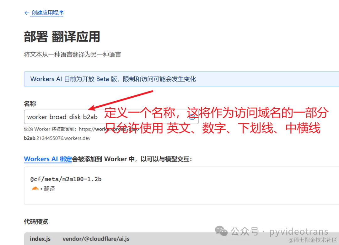 在下一个界面中,设定一个名称, 这个名称将是分配给你的域名的一部分,只允许使用 数字、英文、下划线、中横线组成,如下图