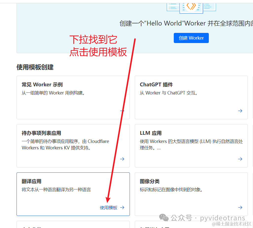 在打开的新页面中,下拉找到“翻译应用”,鼠标放上去,点击显示出来的“使用模板”