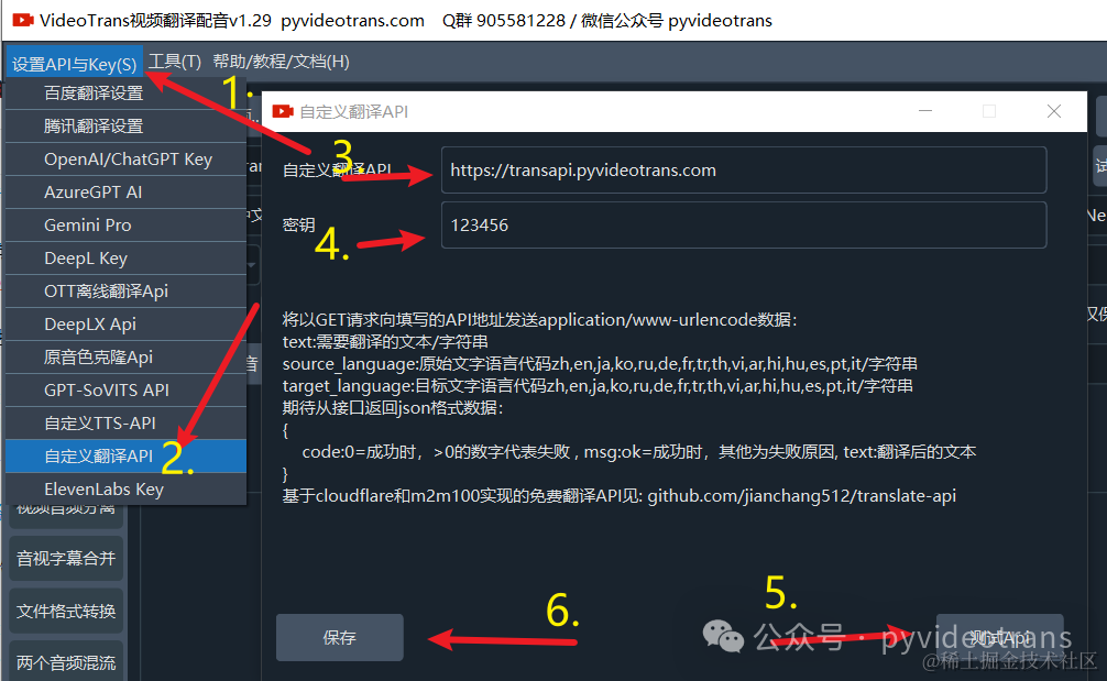 打开左上角设置菜单--自定义翻译API,填写你的api地址和密钥,然后测试下