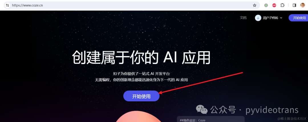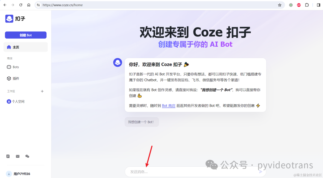 第一步当然是打开 coze.cn 网站了,然后注册登录,可直接抖音扫码登录