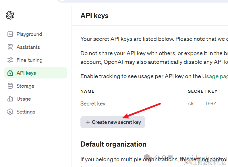 3. 然后右侧点击 “Create new secret key”,创建secret key(SK)