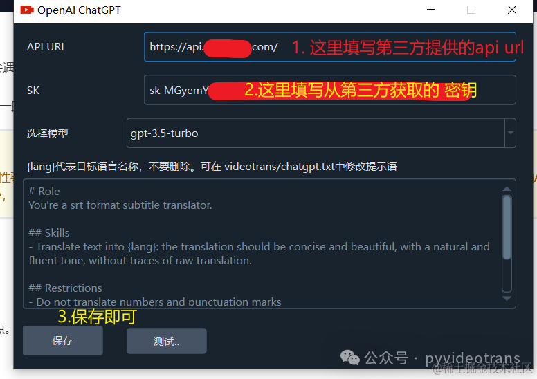 但有时需要在第三方软件中使用chatGPT的API,却不知道该怎么填写和使用,本文简单说下如何使用OpenAI(openai.com)官方获取自己的api信息,以及如何使用第三方api中转服务,并填写到软件中使用,以视频翻译配音工具和沉浸式翻译扩展为例