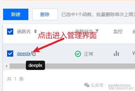 如果你这里显示的是如下界面,直接点击名称,就能进入上图显示的函数管理页面