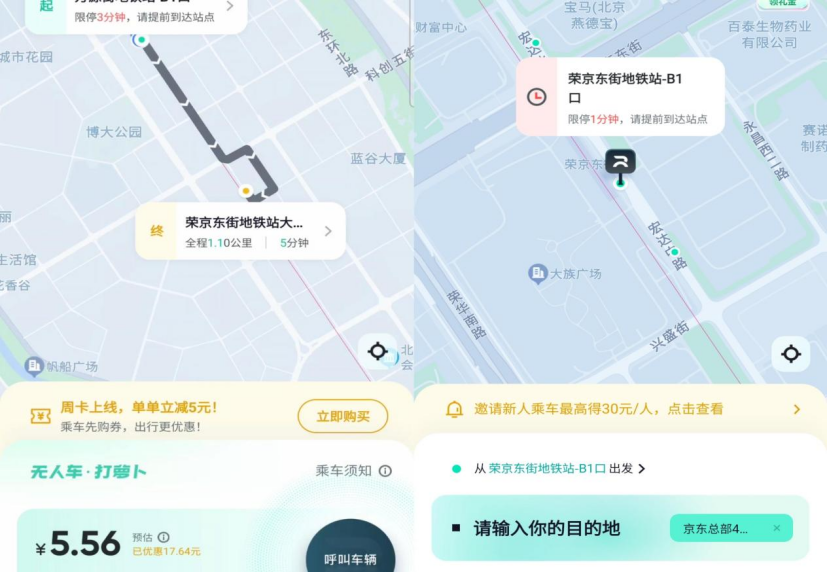 使用“萝卜快跑”APP打车与使用普通叫车软件类似