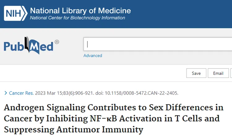 2023年3月,中山大学癌症研究中心发表在《Cancer Res》杂志上的一篇报告指出,雄激素过高可能会降低机体免疫力,因为雄激素信号会抑制男性对癌症的T细胞免疫。