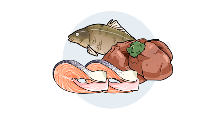 同时每周吃1-2次脂肪鱼类,例如鲑鱼、鳟鱼、鲭鱼和鳕鱼,或者每月吃1-2次动物肝脏。