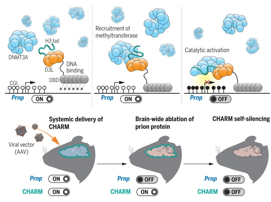 [1] Edwin N. Neumann et al., Brain-wide silencing of prion protein by AAV-mediated delivery of an engineered compact epigenetic editor. Science (2024). DOI: 10.1126/science.ado7082