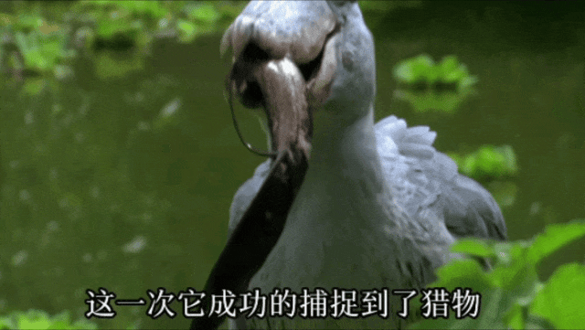 忍耐半个小时之后,肺鱼实在憋不住了,钻出水面呼吸,鲸头鹳便会以“迅雷不及掩耳盗铃”之势发动攻击,一口将肺鱼啄住,它那像老虎钳一样的嘴巴会牢牢地夹住猎物。