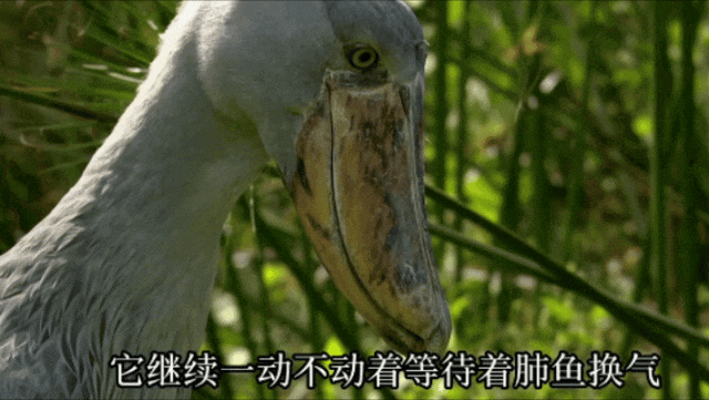 但肺鱼的机动性却很强,只要水面有一点风吹草动,它们便能迅速做出反应。就算如此机敏,在它们钻出水面呼吸的一刹那,仍旧充满风险。因为它们的天敌——鲸头鹳,最大的优点就是能够长时间一动不动地发呆。