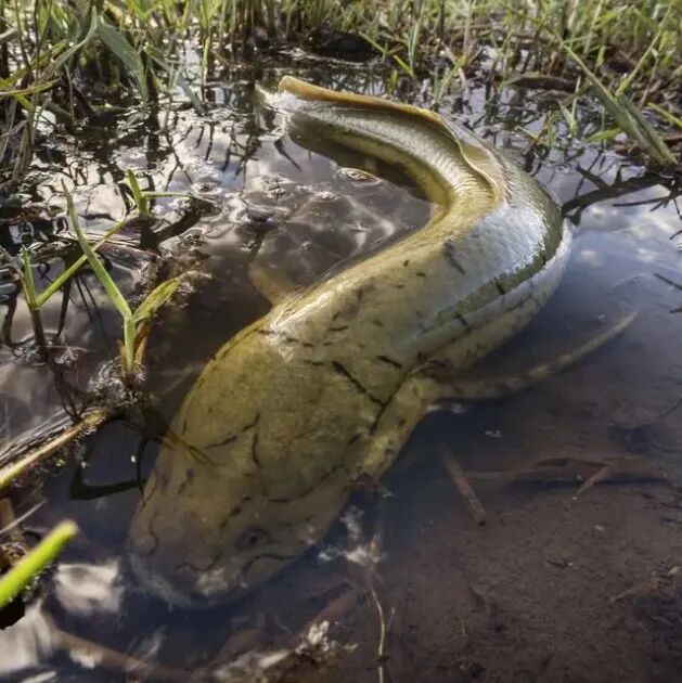 生命力如此强悍的肺鱼,除了人类之外,是不是就没有对手了呢?非也,当旱季结束、雨季来临的时候,它们的危险也悄然降临。