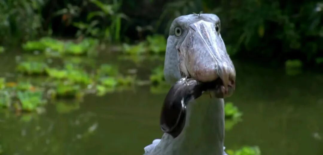 这个时候,肺鱼就像“辣条”一样,成为鲸头鹳的美食,被一口吞下,甚至连眼睛还没来得及眨一下,肺鱼就已经成了腹中之物。