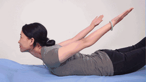 每天早晚,趴在床上,双手放在背后,以腹部为支点,用力挺胸抬头,同时双腿并拢,绷直脚尖尽量向上抬起,使整个身体反翘起来,就像燕子在飞,持续5秒左右,然后放松休息,接着重复这个动作,每次做15~20次左右。