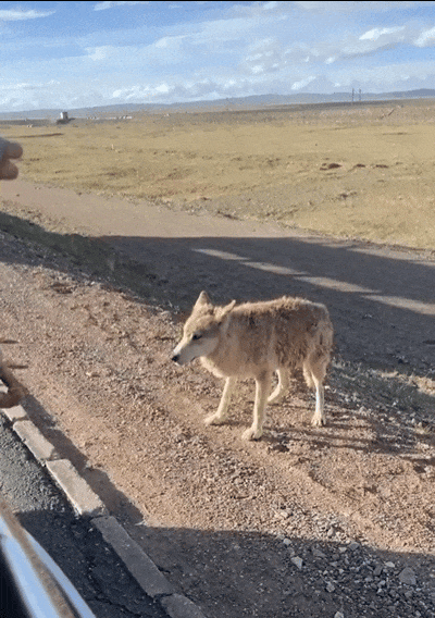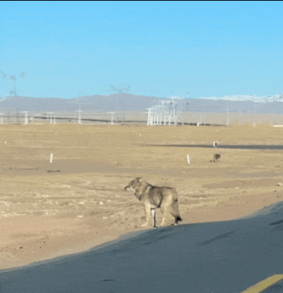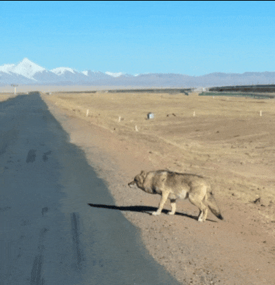 于是乎这匹狼只能在可可西里的国道上游荡。