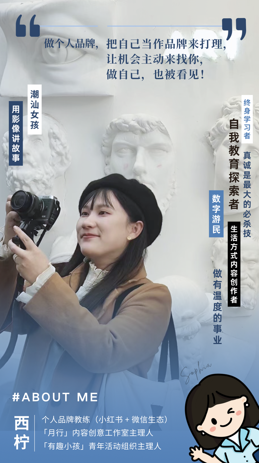 哈喽大家好,我是西柠,人生事业创造营的第七期学员,来自牛肉丸的故乡潮汕汕头!