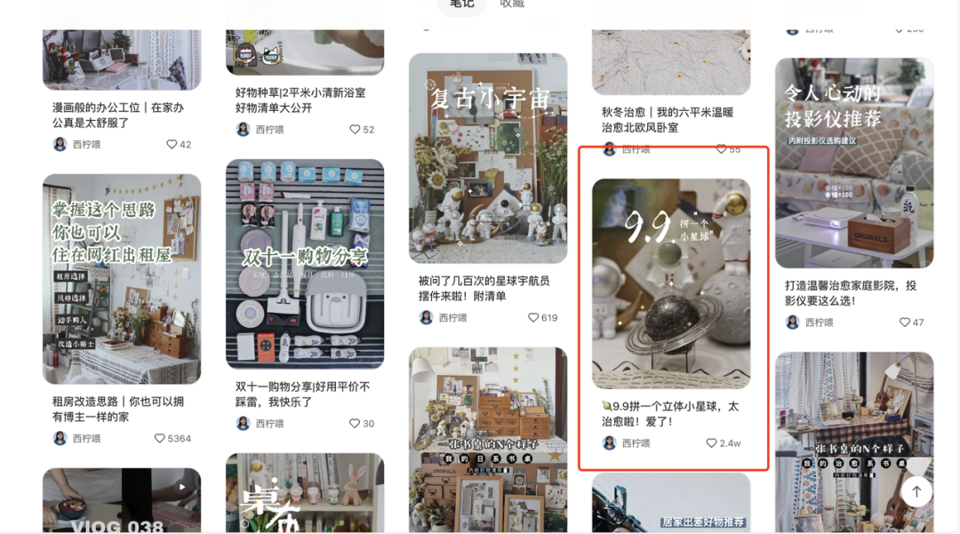 其中做的还不错的板块之一,是我的小红书账号。得益于我本身的内容能力,工作之余我都在拍摄、布置房间、采购物料,也做出了很多篇爆文,最好的一篇帖子有2.4w+的互动~
