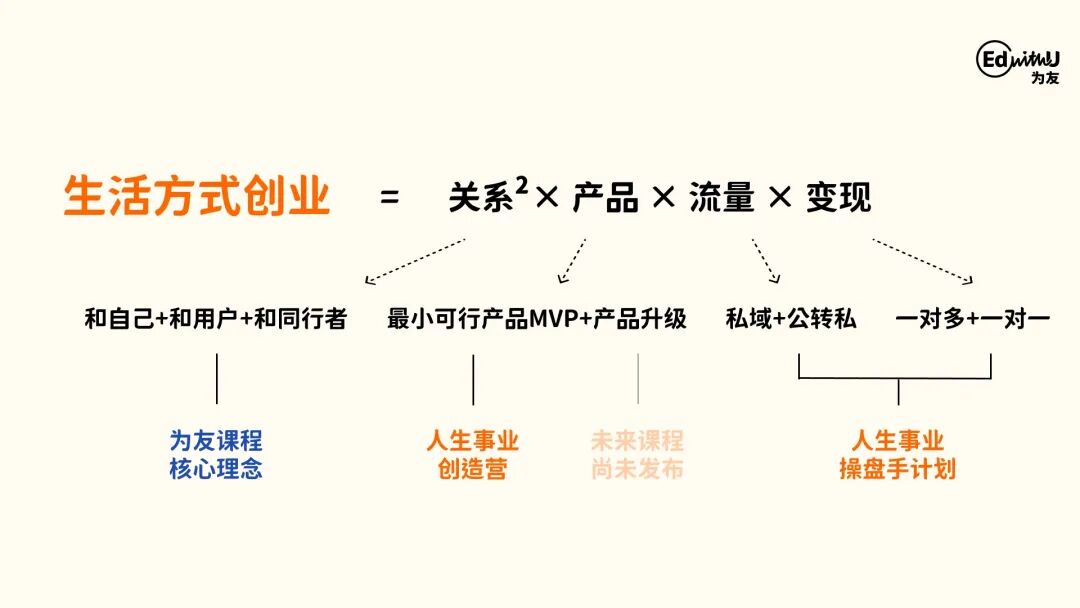 从教育人社群,到文科人职业发展社群,到“带领理想主义者通过副业快乐搞钱”,再到如今的“生活方式创业”。