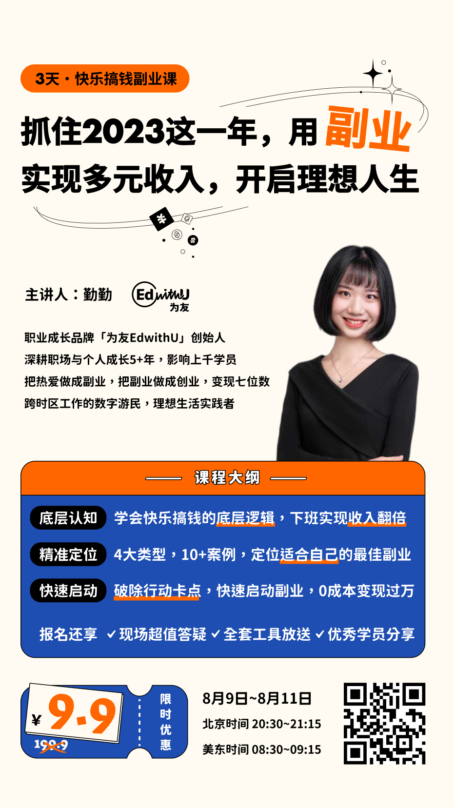 现在为友推出了副业营的体验版——【三天 · 快乐搞钱副业课】。