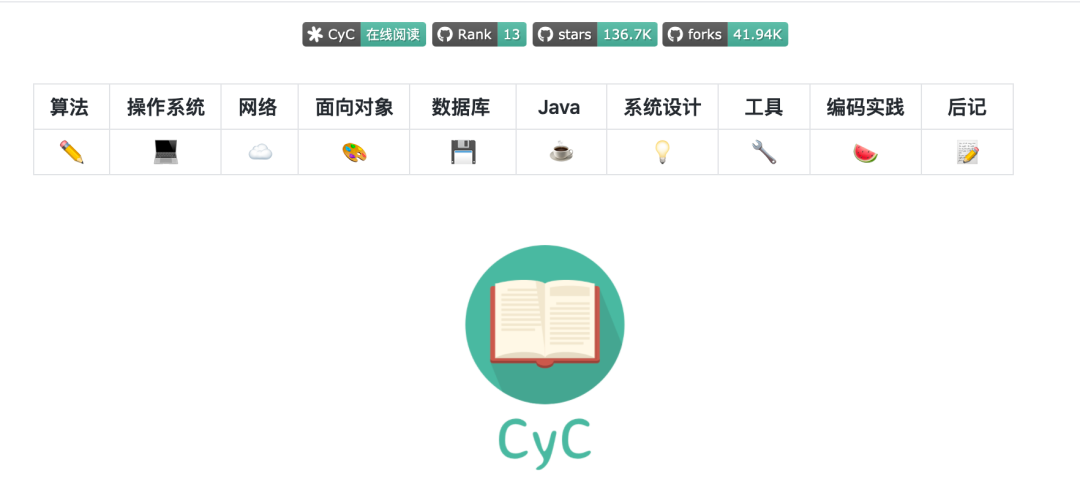 这个项目 136.7K 的 Star!包含了技术面试必备的基础知识,内容浅显易懂,你不需要花很长的时间去阅读和理解成堆的技术书籍就可以快速掌握这些知识,从而节省宝贵的面试复习时间。