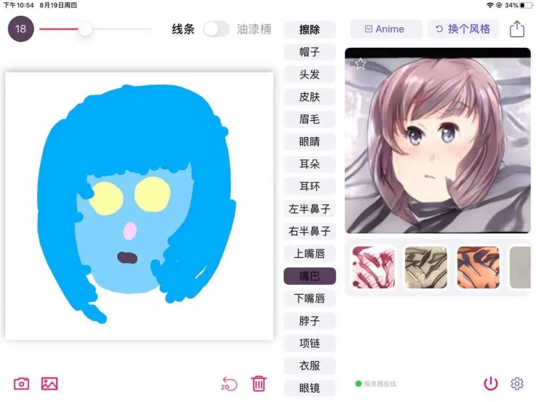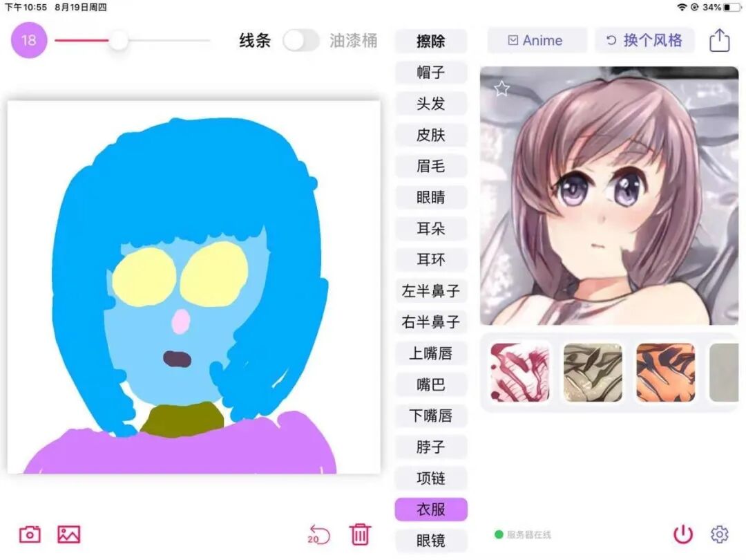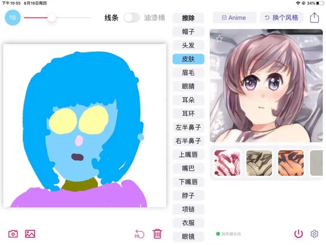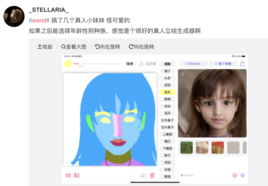这个开源项目支持两种创作模式,我称它为二次元模式和真人模式。上面演示的就是二次元模式,通过简单的勾勾画画能生成一个二次元萌妹子。