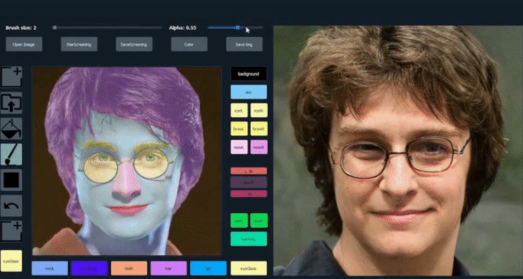 但是如果你选择真人模式,就能够通过勾勾画画生成一个真实的人脸。如果你有画术高超,也许能仿照着哈利波特的照片画出它的亲生兄弟。