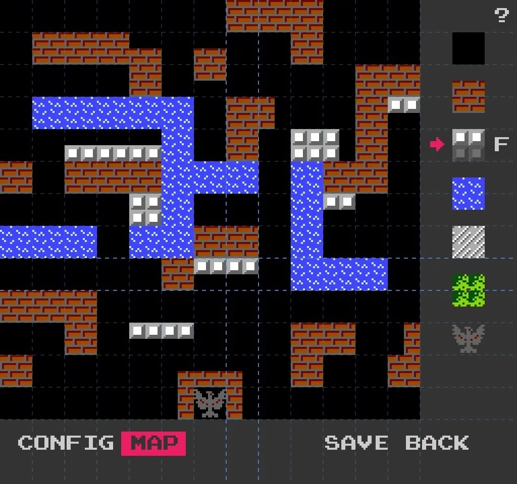 针对鼠标交互设计的关卡编辑器:点击鼠标,选择画笔类型,在地图中拖拽鼠标就即可完成关卡配置,再也不用担心游戏手柄按得手酸啦 。