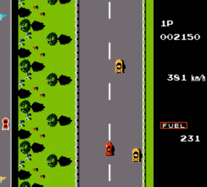 公路赛车:撞到彩虹车会给你加时间,有时候还会有超人彩蛋。